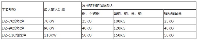 表中所列為每種熔煉爐的最大加熱能力,冷爐時(shí),每爐熔煉時(shí)間為50--60分鐘,熱爐時(shí),每爐熔煉時(shí)間為20--30分鐘。